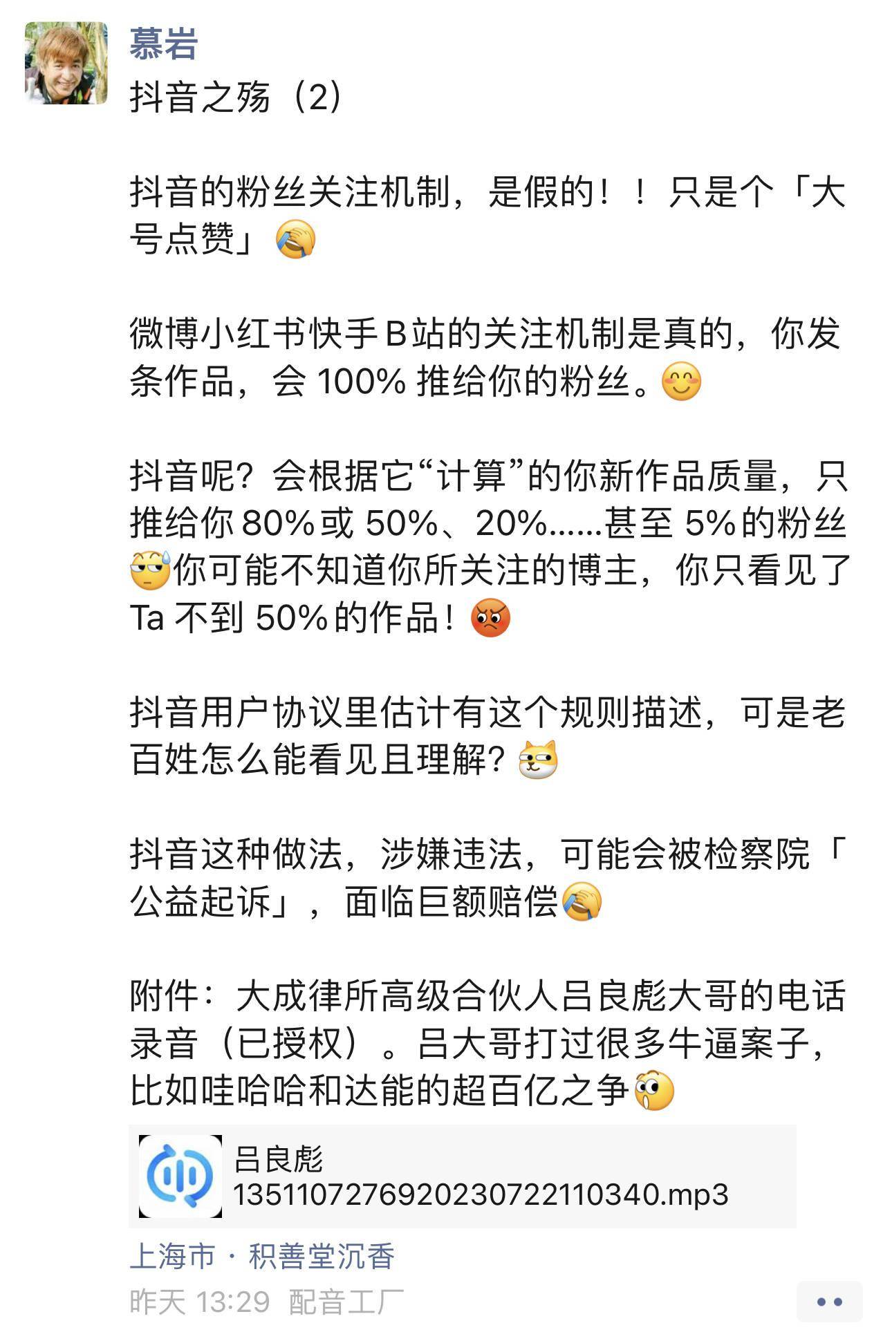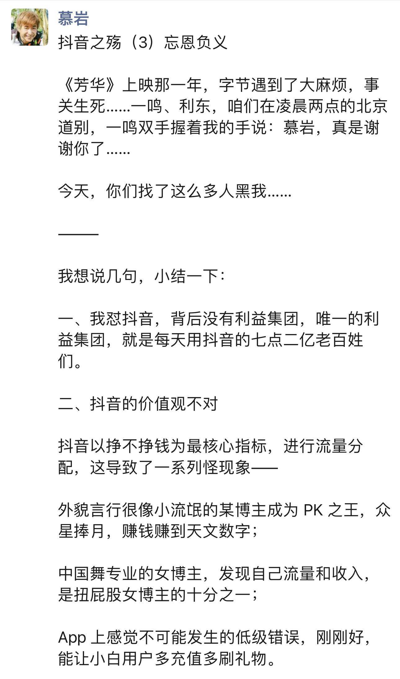 原标题:慕岩再发「抖音之殇」系列朋友圈