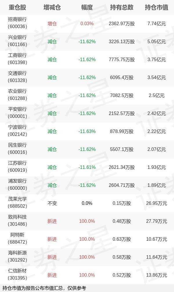 原标题:天弘基金陈瑶旗下天弘中证银行ETF中报最新持仓,重仓招商银行