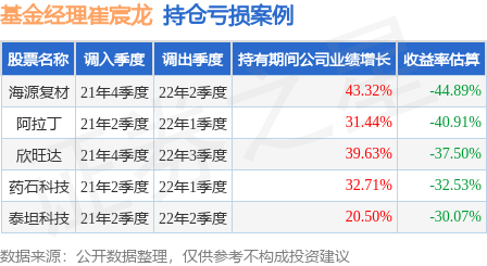 崔宸龙管理的前海开源新兴产业混合A基金在21年4季度买入海源复材,在持有2个季度后在22年2季度卖出。持有期间的估算收益率为-44.89%,持有期间海源复材在2021年到2022年的年报营业总收入增幅达43.32%。