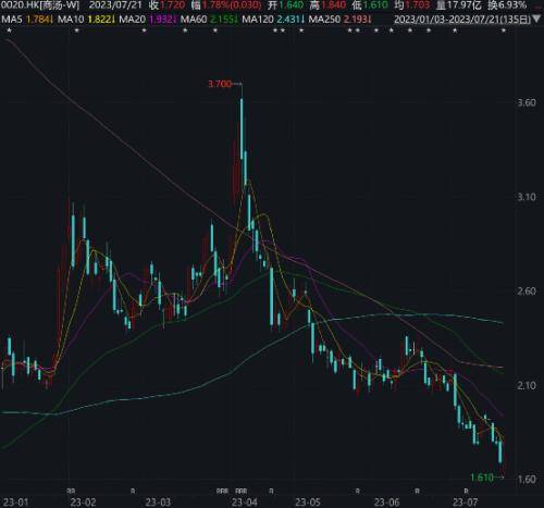 事实上,今年商汤也火过一把,伴随着大模型体系的宣布,其股价在4月一度涨至3.7港元/股,但就在这个时候阿里也开启了减持的历程,不停地卖卖卖;此后公司股价不断下跌,最新仅报收1.72港元/股,今年以来股价由涨转跌,跌幅近23%。我们一起来看看究竟怎么回事。