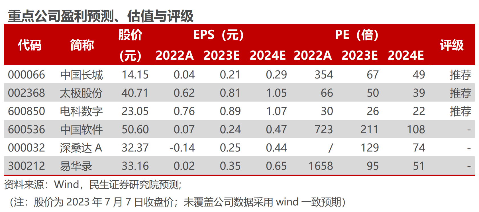 信创产业推进已经成为大势所趋,国企改革政策催化频出,并且更加强调了对于资本市场、专业化整合的高度重视。民生证券吕伟等人在7月9日发布的研报中表示,中国电科与中国电子的历史背景和战略定位决定了其计算机行业“国家队”的重大使命,在专业化整合等政策驱动下有望迎来深化改革的重要红利,建议重点关注两大集团旗下中国软件、中国长城、太极股份、深桑达A、易华录、电科数字、电科网安等上市公司。