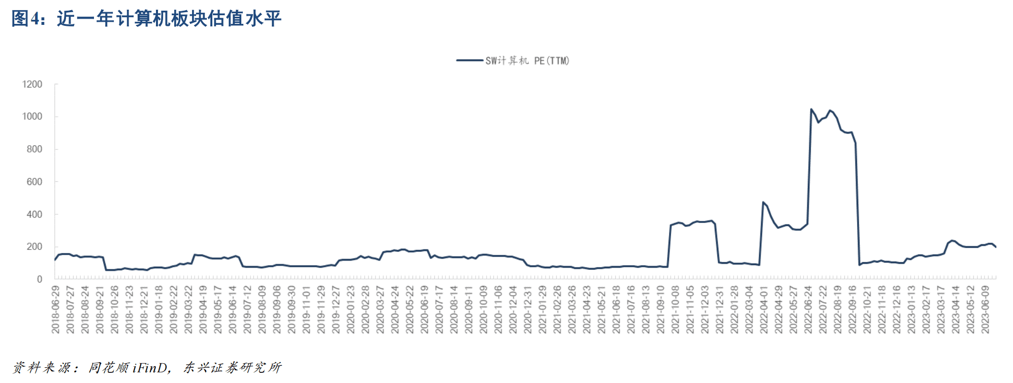 截至2023年6月底,计算机板块的PE(TTM)达200.87 倍,处于过去五年80.47%分位,整体估值水平较高。分析师认为,板块处于较高估值水平,下半年有望通过业绩改善实现部分消化。刘蒙认为在市场对经济复苏情况、刺激政策情况难以达成一致预期的外部环境下,具有高远期空间及一定中期确定性的科技板块仍具备较强投资吸引力。当前计算机行业整体业绩有着较为明确的边际改善预期,有望帮助消化部分估值,同时部分非热门子板块仍处于较低估值区间,具备一定投资性价比。
