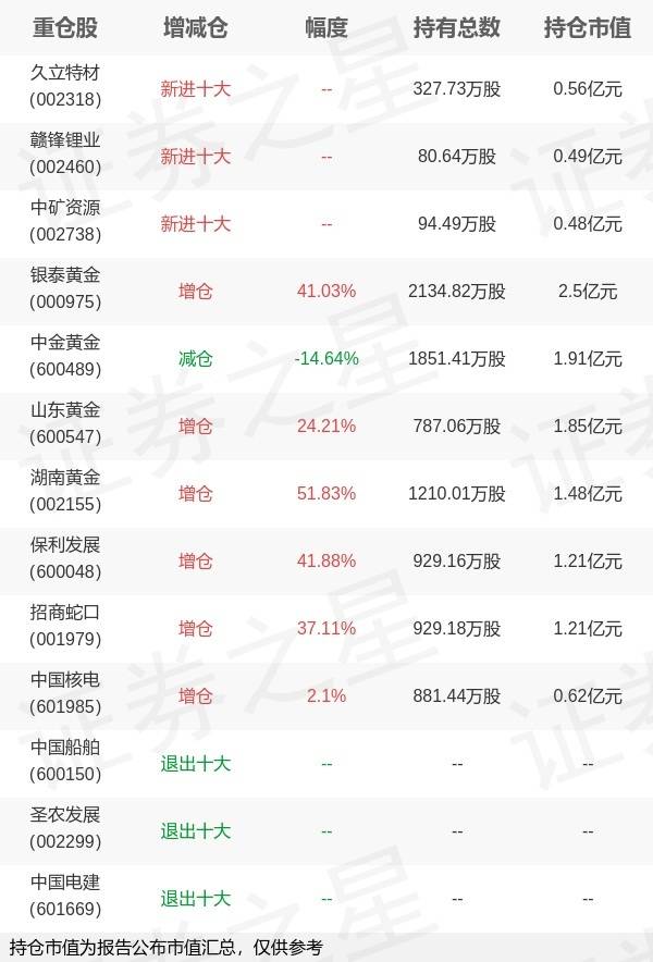 7月21日华泰柏瑞基金旗下郑青 董辰管理的华泰柏瑞鼎利灵活配置混合型基金公布中报,近1年净值增长率4.71%。与上一季度相比,该基金前十大重仓股新增久立特材,赣锋锂业,中矿资源;并对银泰黄金增仓621.07万股,为该基金第一大重仓股;中国船舶,圣农发展,中国电建等退出前十大重仓股;详细数据如下: