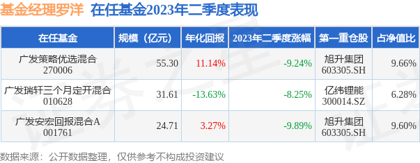 截止2023年二季度末,基金经理罗洋旗下共管理3只基金,本季度表现最佳的为广发瑞轩三个月定开混合(010628),季度净值跌8.25%。
