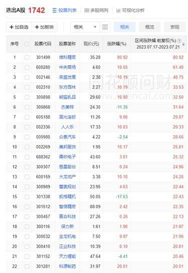 相应的,上涨个股本周只有1742只。但比较夸张的是,涨幅超过20%的多达22只。其中,排除周五上市大涨80%的维科精密,领涨的是连板5天的中央商场(零售+地产)和5天4板的荣盛发展(房地产开发);再往下,不少沉寂已久的消费类个股难得地排名靠前。