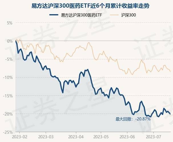 7月21日,易方达沪深300医药ETF最新单位净值为0.4298元,累计净值为1.7192元,较前一交易日上涨1.13%。历史数据显示该基金近1个月上涨1.34%,近3个月下跌7.39%,近6个月下跌19.16%,近1年下跌18.58%。该基金近6个月的累计收益率走势如下图: