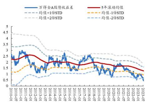 图表16:万得全A股债收益差刺破“2倍标准差下限”
