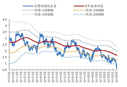 图表26:消费股债收益差刺破“2倍标准差下限”