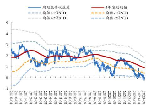 图表25:周期股债收益差刺破“2倍标准差下限”