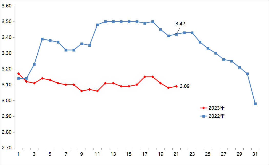 7月21日,新发地市场蔬菜加权平均价是3.09元/公斤,与上周同期(7月14日)的3.09元/公斤持平;比去年同期的3.42元/公斤下降9.65%。 周环比持平;年同比大幅下降。上周末,价格同比下降11.71%,本周同比降幅有所收窄。