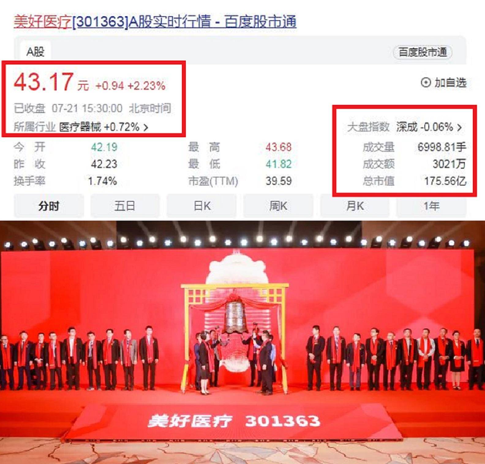 2022年10月12日,深圳市美好创亿医疗科技股份有限公司在深交所创业板上市(股票代码301363 )。截止2023年7月23日收盘,美好医疗的总市值175.56亿元人民币。