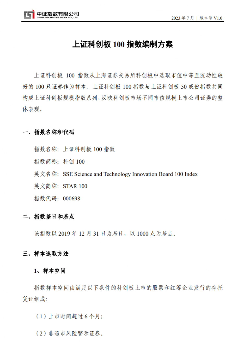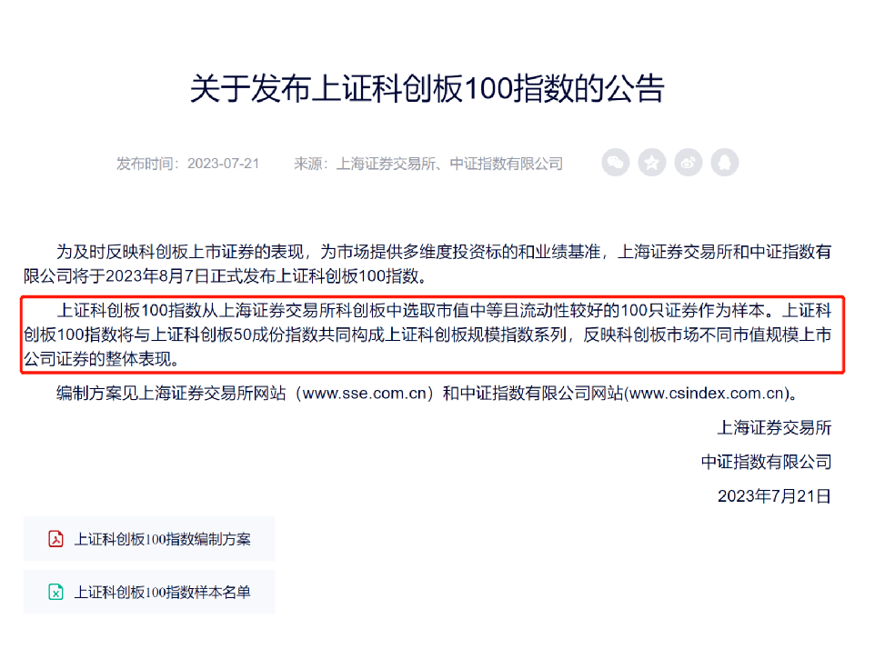 中证指数公司第一时间发布了科创100指数的编制方案。