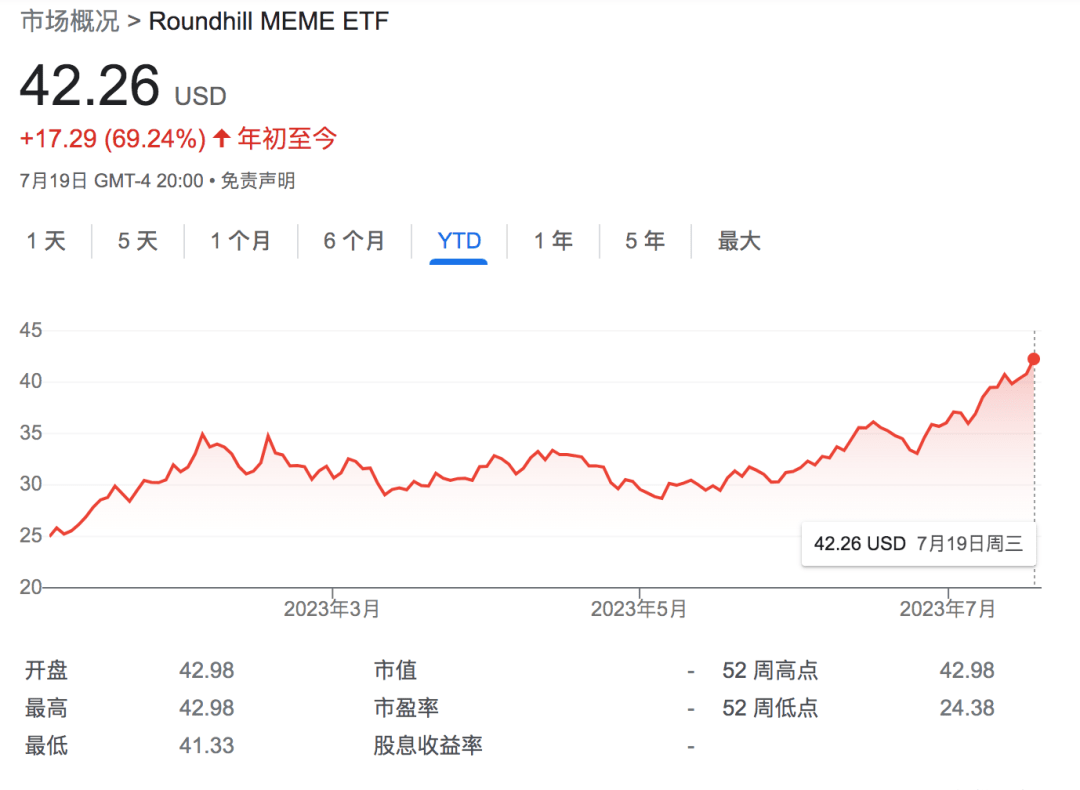 眼下,市场的疯狂似乎又回到了2021年。MEME ETF今年已经涨69%,近一个月涨近20%。