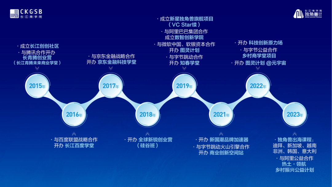 2023年7月21日,长江商学院创创社区正式升级为长江商学院 「 独角兽加速项目」。