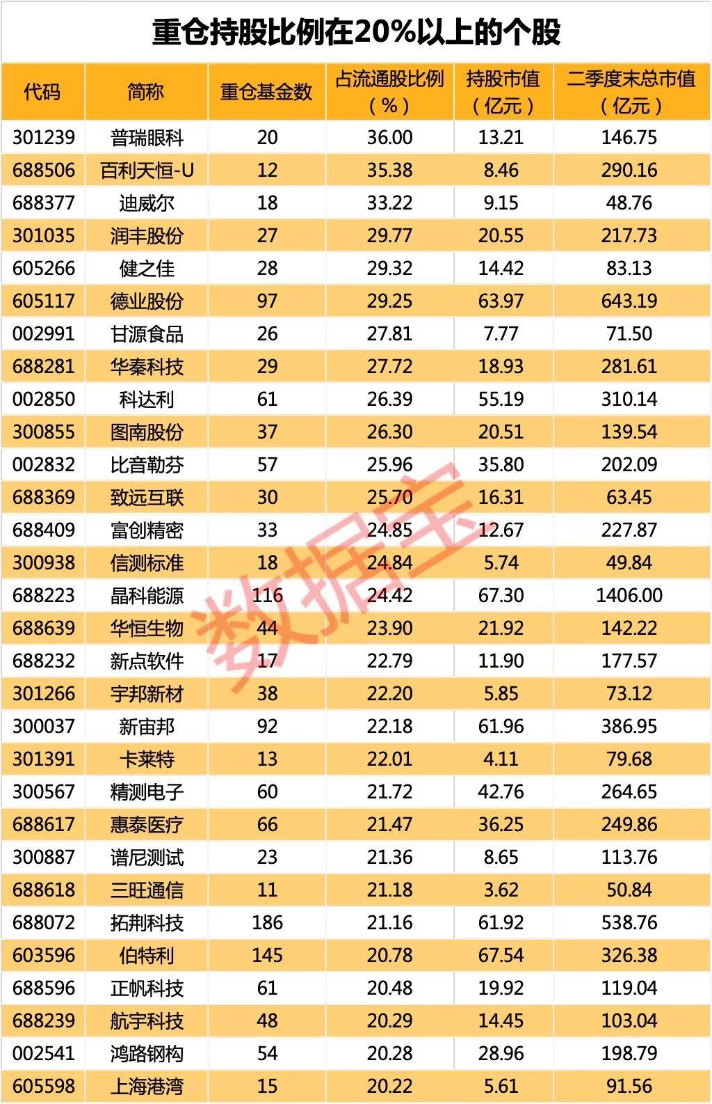 6只基金高比例重仓股