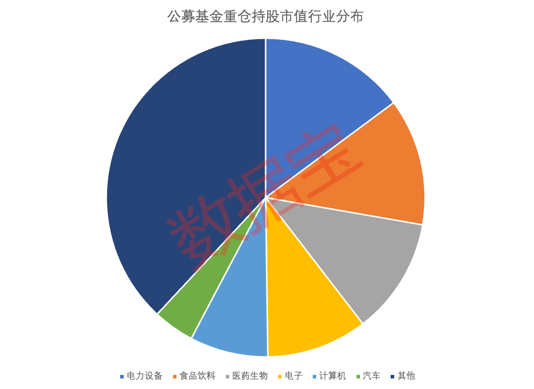 分行业来看,5个行业基金重仓持股市值在千亿元以上,包括电力设备、食品饮料、医药生物、电子、计算机。其中,电力设备行业持股市值最高,合计2998.98亿元,医药生物行业重仓股数量最多,合计270股。