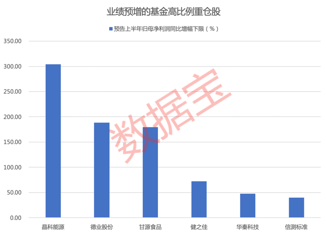 统计显示,30只公募基金重仓持股占流通股比例在20%以上的个股中,6股已发布2023年度上半年业绩预告,均为业绩预增,晶科能源、德业股份、甘源食品预计增幅居前。