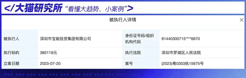 就在宝能还在纠结于姚振华不能进厂的时候,姚振华的宝能投资又新增了一条被执行人信息,而天眼查显示,仅宝能投资身后的失信记录有28条,被执行人记录79条,执行总金额417.49亿元,限制高消费记录114条。