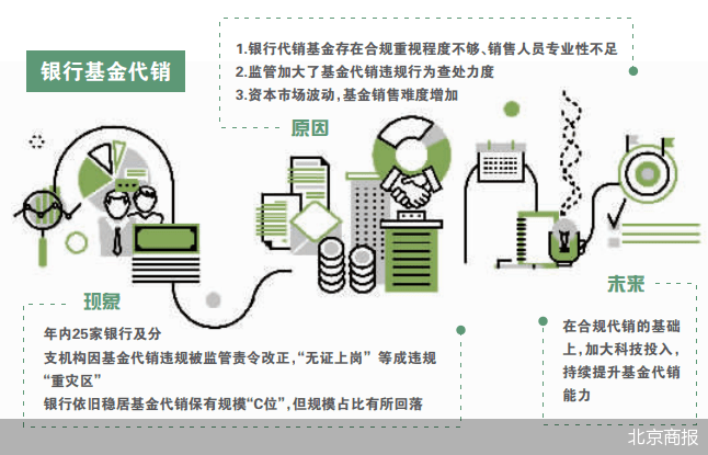 对此,分析人士指出,近年来,基金代销业务快速发展的同时也暴露出一系列问题,银行在开展相关业务时存在专业人员配备不齐等违规行为,但随着监管质效的提升,未来银行代销业务会逐步向规范化方向发展,在合规代销的基础上,银行还应持续提升基金代销能力。