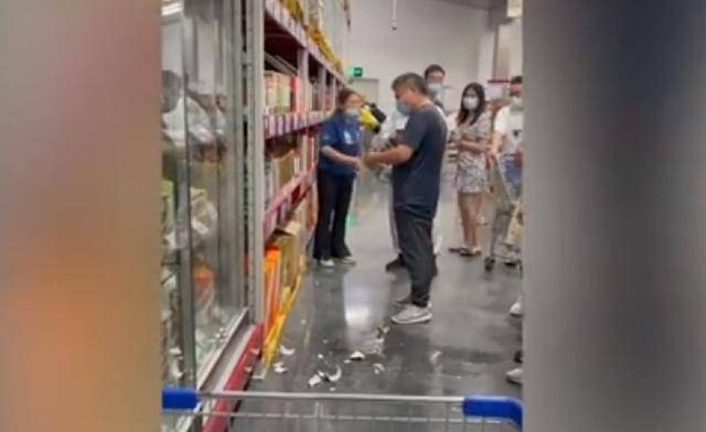 从现场目击者提供的视频可以看到,货架上茅台等动辄数万元的名酒如同普通商品一样摆放在货架上,一名男性顾客手里拿着茅台酒的包装盒,可盒子里却已经空空如也。脚下酒瓶碎裂一地,价值高昂的酒液倾洒在地上。