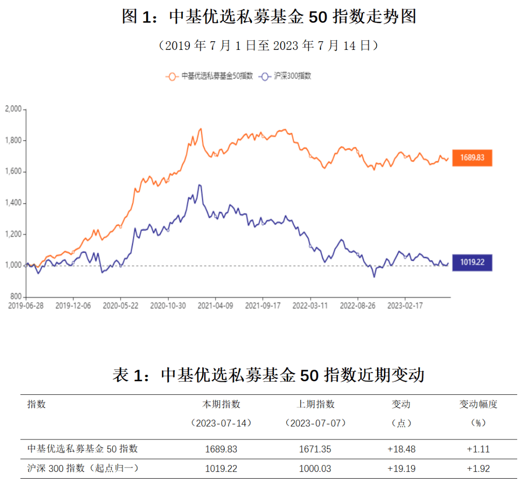 中基私募50指数在2023年7月14日当周收于1689.83点,较2023年7月7日当周上涨1.11%。