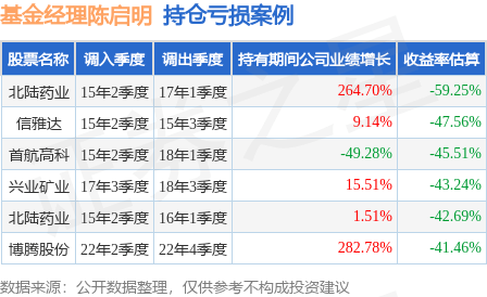 陈启明管理的华富竞争力优选混合A基金在15年2季度买入北陆药业,在持有1年又3个季度后在17年1季度卖出。持有期间的估算收益率为-59.25%,持有期间北陆药业在2015年到2017年的年报归属净利润增幅达264.7%。