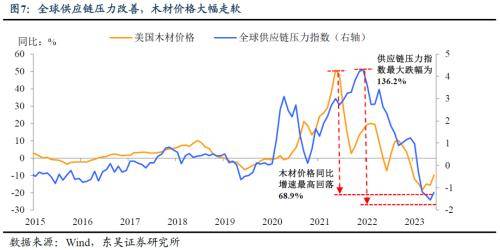 而当前处于历史低位的地产库存,让地产商对于未来销售的信心明显反弹:NAHB开发商乐观指数反弹已持续7个月,连续2个月回到50上方(图5-6)。此外供应链持续改善、建材大幅价格下降,也让地产商有更多的腾挪空间(图7)。