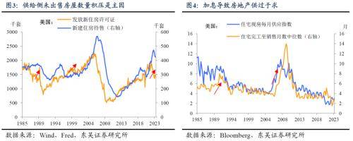从供给端看,低库存和供应链改善是开发商乐观的主要源头。根据之前的报告,我们提出“弱供给”是当前房产乐观的主要理由。因为从历史上看,4次房价崩溃的相似之处都是加息周期中累积了过量的库存(图3-4)。