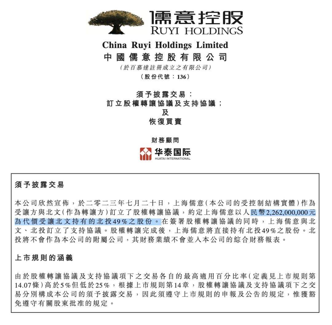 【王健林转让北京万达投资49%股权,所得资金将用于偿还7月23日到期美元债】7月22日消息,王健林将北京万达投资有限公司49%的股权转让给了上海儒意影视制作有限公司。目前双方还未披露此次转让股权的价格。有知情人士称,此次万达集团将出售的资金用于偿还7月23日到期的4亿美元债本金。天眼查股权资料显示,此次转让已经完成,7月20日,公司完成投资人变更。交易完成以后,北京万达投资由北京万达文化产业集团有限公司持股49.8%,由上海儒意影视持股49%。(澎湃新闻)