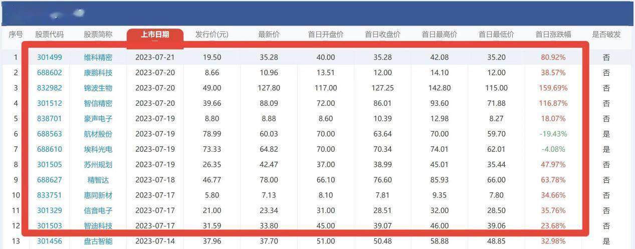 回顾上周(7月17日-7月21日),A股迎来了12只“新成员”。锦波生物领涨,首日涨超159%,2只新股破发,分别为航材股份、埃科光电。