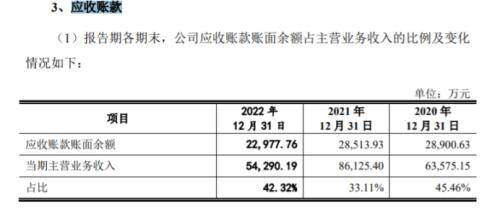 报告期各期末,公司应收账款账面余额分别为2.89亿元、2.85亿元和2.30亿元,分别占当期主营业务收入的45.46%、33.11%和42.32%。