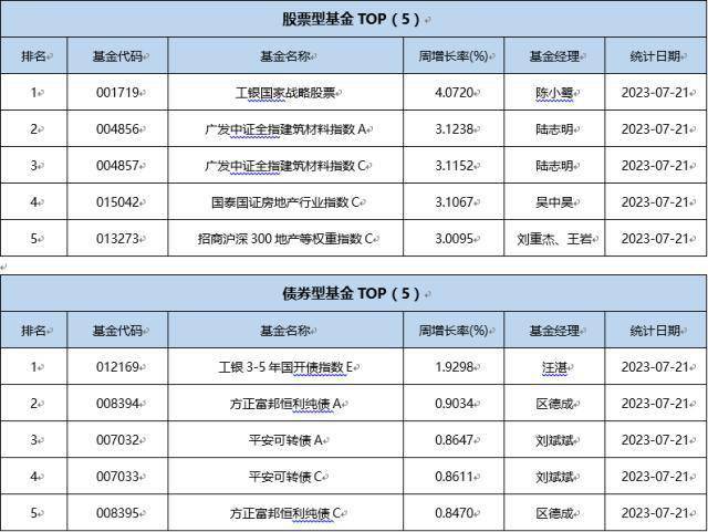 上周(7.17-7.21)绩优基金一览