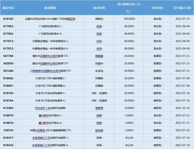 上周(7.17-7.21)新发基金一览(不包含传统封闭式基金)