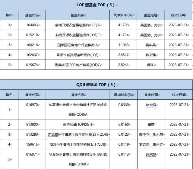 上周(7.17-7.21)基金行情