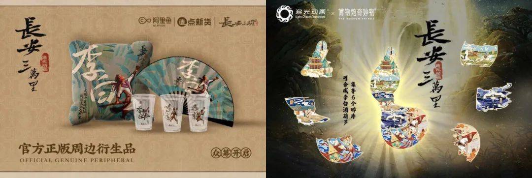 追光动和博物馆奇妙物或合作推出的《长安三万里》文创周边如扑克牌、手机壳、明信片、冰箱贴、文件夹、帆布包、唐诗花笺套装等产品也在造点新货内火热众筹中,目前还有41天结束,成交数630,已筹5.8万,超过目标金额581%。博物馆奇妙物是专注于文博IP领域运营的品牌,重点发掘博物馆IP等文化IP的价值,《长安三万里》这一讲述大唐历史群像的影视IP则正好与其契合。