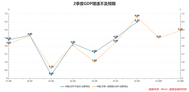 上半年,我国GDP同比增长5.5%,低于市场预期值6.1%;其中,2季度增长6.3%,低于市场预期值6.84%。