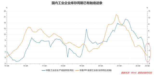 外围因素看,(1)无论美联储还要加息几次,但Q4确定性结束加息,美债利率有望趋势下行,利好包括A股在内的风险资产表现。人民币汇率贬值压力消失,也利于外资重新流入A股,带来增量资金。(2)当前美欧制造业库存有加速赶底迹象,有望于下半年触底回升,届时将对我国出口形成支撑;(3)2024年美国大选之前,中美关系出现阶段性缓和迹象,助力风险偏好抬升。