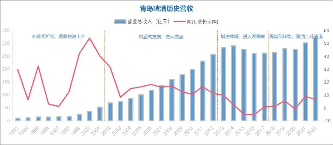 青岛啤酒从地方性啤酒企业发展为全国性酒企,并引领了国内啤酒行业的整合浪潮。