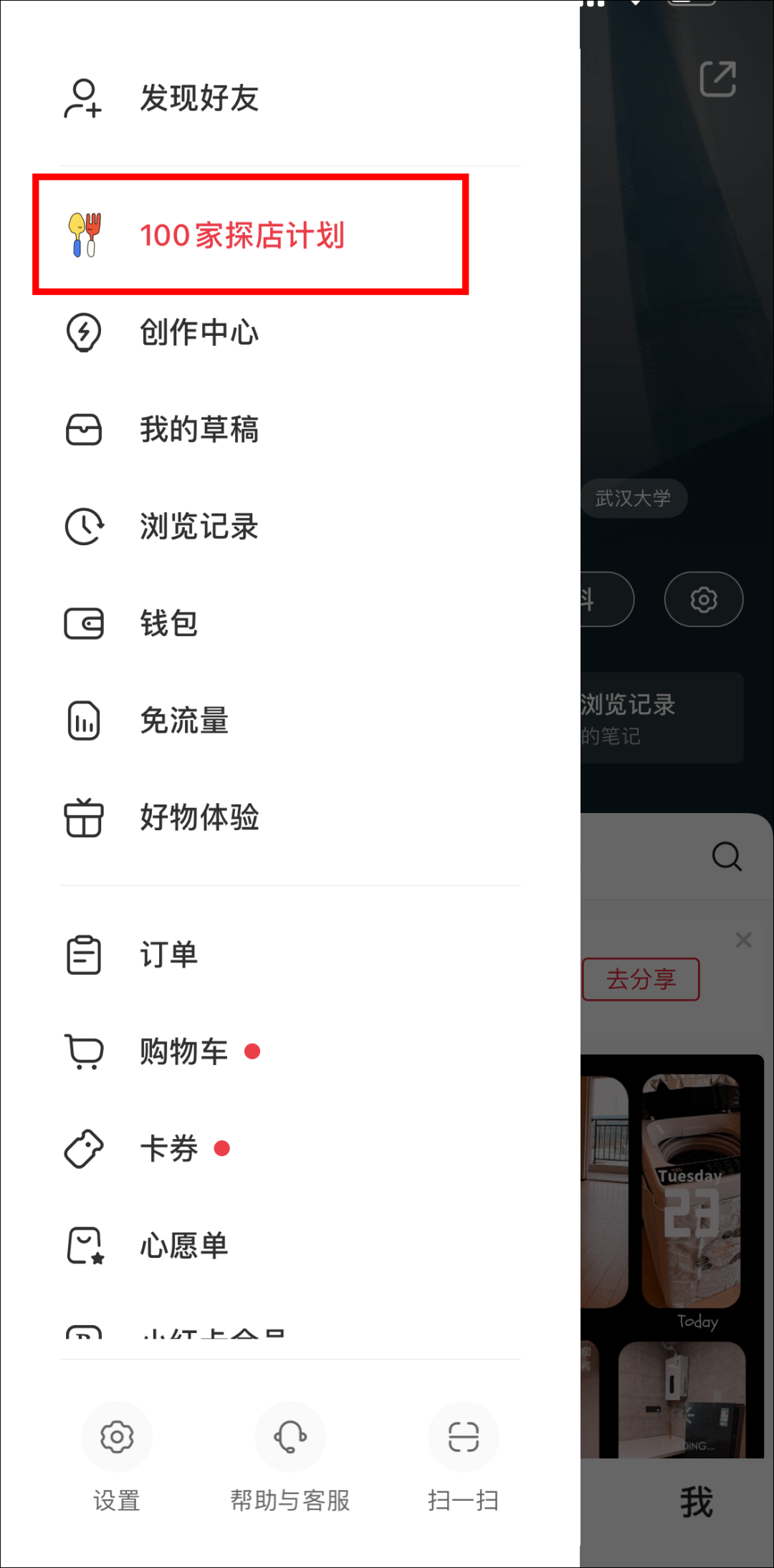 目前,在小红书「我」的页面,点击左上角三条横向进入侧边栏,就可以看到显眼的活动入口。