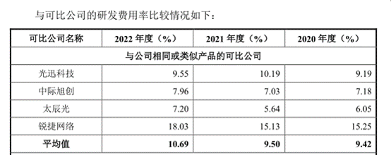 更加令人不解的是,报告期内,飞速创新的研发费用率分别为6.87%、5.78%、5.02%,与公司相同或蕾西产品的可比公司均值分别为9.42%、9.5%、10.69%。那么,飞速创新到底是如何在研发费用率低于同行均值的情况下,毛利率却能远高同行均值?