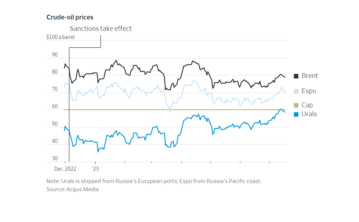 大宗商品数据公司阿格斯(Argus Media)的数据显示,这是自美国及其盟友去年12月实施新的制裁政策以来,俄罗斯主打产品乌拉尔原油价格首次突破每桶60美元的限制。这表明克里姆林宫至少在一定程度上成功地适应了这些限制。