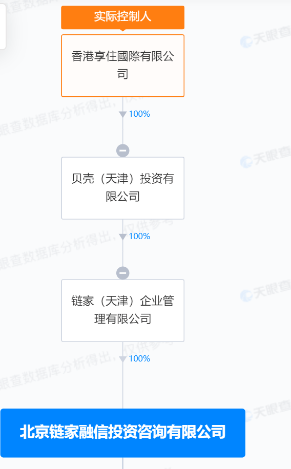 通过股权穿透可以发现这家新成立的公司有两大股东,一是杭州颜正企业管理有限公司,另外一家是北京链家融信投资咨询有限公司,查看两家公司的股权结构,北京链家融信身后赫然出现贝壳和链家的身影。5年前胡景晖离职和链家有关,这次杭州我爱我家的内斗,又和链家扯上了关系?