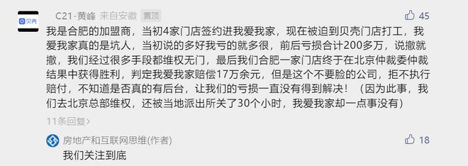 接着曝出了大量加盟店维权事件,比如2022年6月初,要求合肥140多家加盟门店店东解约但不给钱。合肥加盟商爆料称在仲裁后依旧没拿到钱,跑去总部维权,反被关30多个小时。