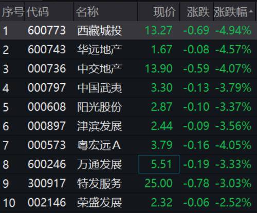 近期地产行业消息颇多,市场信心略显不足。7月24日上午,房地产板块开盘走低,西藏城投、华远地产、粤宏远A、中交地产等多只个股开盘出现大跌。