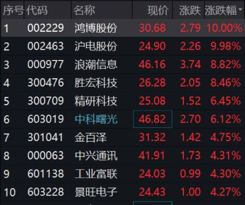 沪电股份、鸿博股份强势封板,浪潮信息、胜宏科技、中科曙光等快速升温,冲击涨停板。
