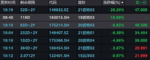 受近期市场“小作文”影响,碧桂园遭遇“股债双杀”。除A股、港股双双走低外,碧桂园旗下债券早间大跌,“21碧地03”跌超21%,触发临停,复牌后继续大跌超26%;“19碧地03”跌近20%。
