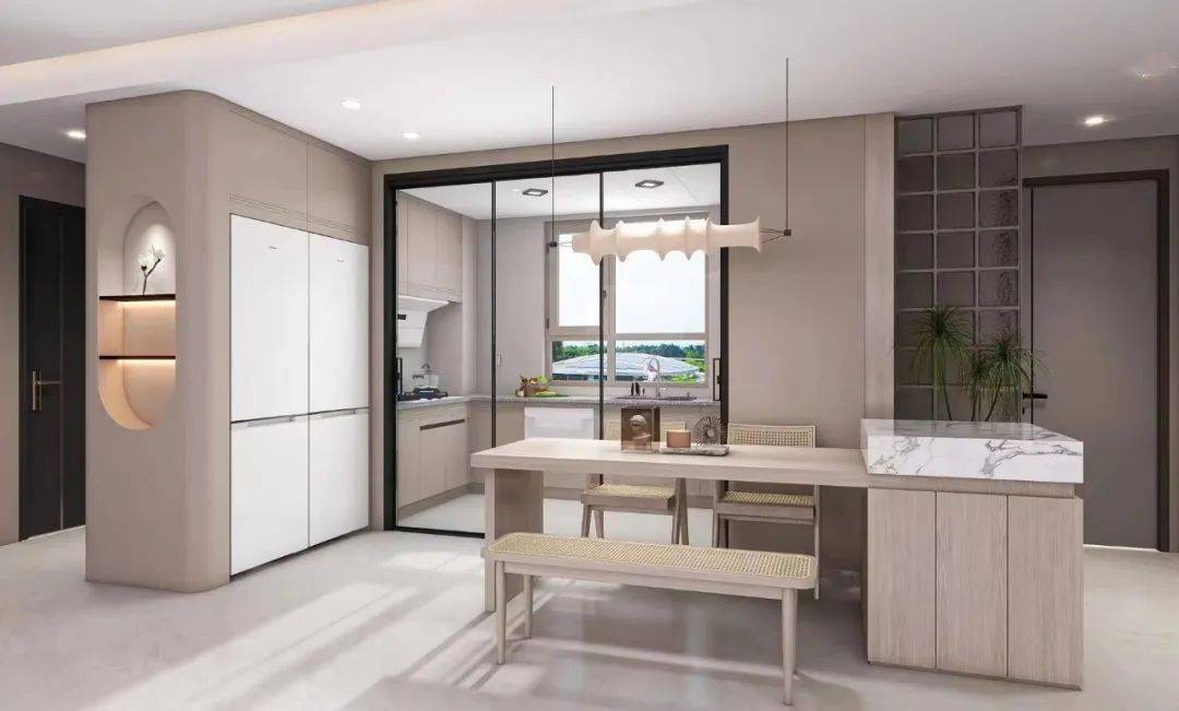 就像现在很多人喜欢把家电完全嵌入柜子里,营造浑然一体的空间感,但家电是需要散热的,像冰箱,嵌入橱柜后左右总要留出一点散热缝隙。