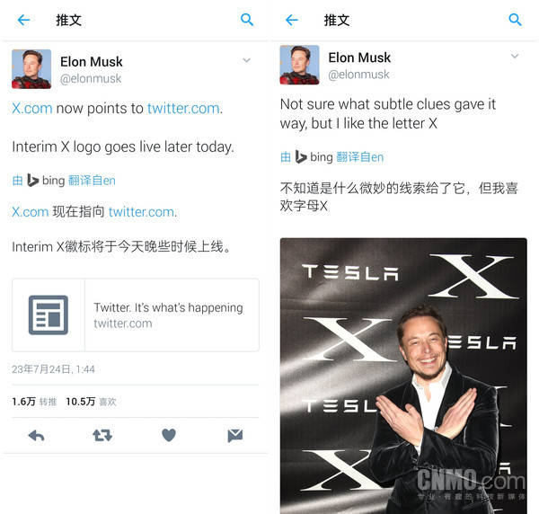【CNMO新闻】7月24日,马斯克确认推特新标志将被改为“X”,不再是以前经典的蓝色小鸟标志。临时X Logo将于晚些时候启用。
