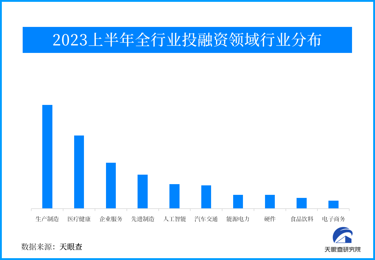从具体数据来看,生产制造、医疗健康以及企业服务,三个行业相关融资事件数位居前列,分别拥有890余起、630余起以及390余起。
