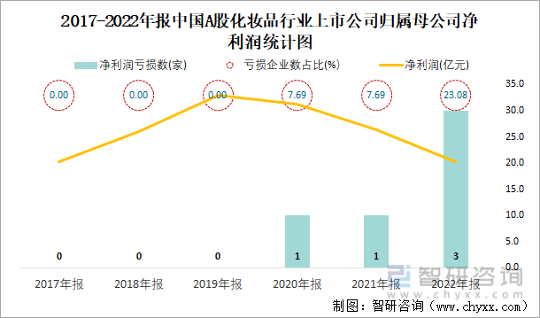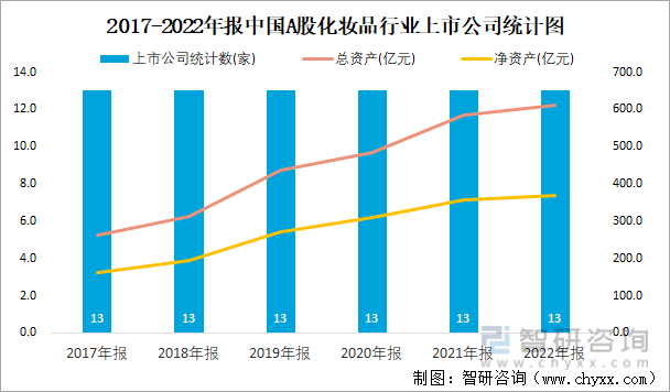 2017-2022年报中国A股化妆品行业上市公司统计图